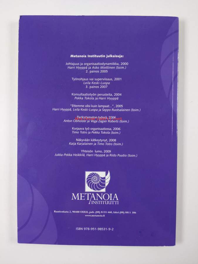 Muu(t) tekijä(t): Jonathan WilsonSarja: Metanoia Instituutin julkaisujaAsiasanat: unet, verkostot, työyhteisöt, yhteisöllisyys, vuorovaikutus, ryhmätyö, organisaatiot, yhteiskunta, sosiaaliset suhteet, ryhmäkäyttäytyminen, konsultointi, uskonnolliset yhteisöt, organisaatiopsykologia, yhteisöt, sosiaalipsykologia, mielekkyys, dynamiikka, sosiaaliset verkostot, dialogisuus, merkitys, yhteisöpsykologia, teatteritaide, uni (lepotila), uskonto (uskominen)