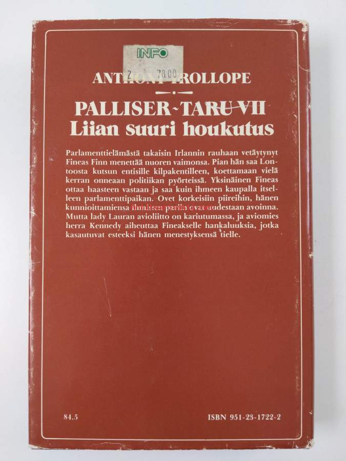 Palliser-taru 1-8 : Epävarmoja tunteita ; Korkeita tavoitteita ; Toiveita ; Kunnian vuoksi ; Timanttien välkettä ; Salaisia juonia ; Liian suuri houkutus ; Murhas...