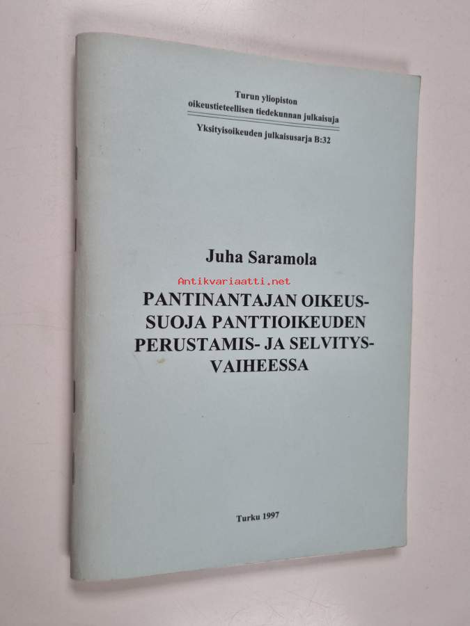 Sarja: Turun yliopiston oikeustieteellisen tiedekunnan julkaisuja. B, Yksityisoikeuden sarja 32Asiasanat: sopimusoikeus, velvoiteoikeus, esineoikeus, sivullissuoja, pantit
