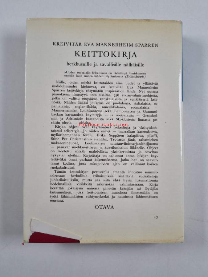 Kreivitär Eva Mannerheim Sparren keittokirja herkkusuille ja tavallisille nälkäisille : 758 valmistusohjetta