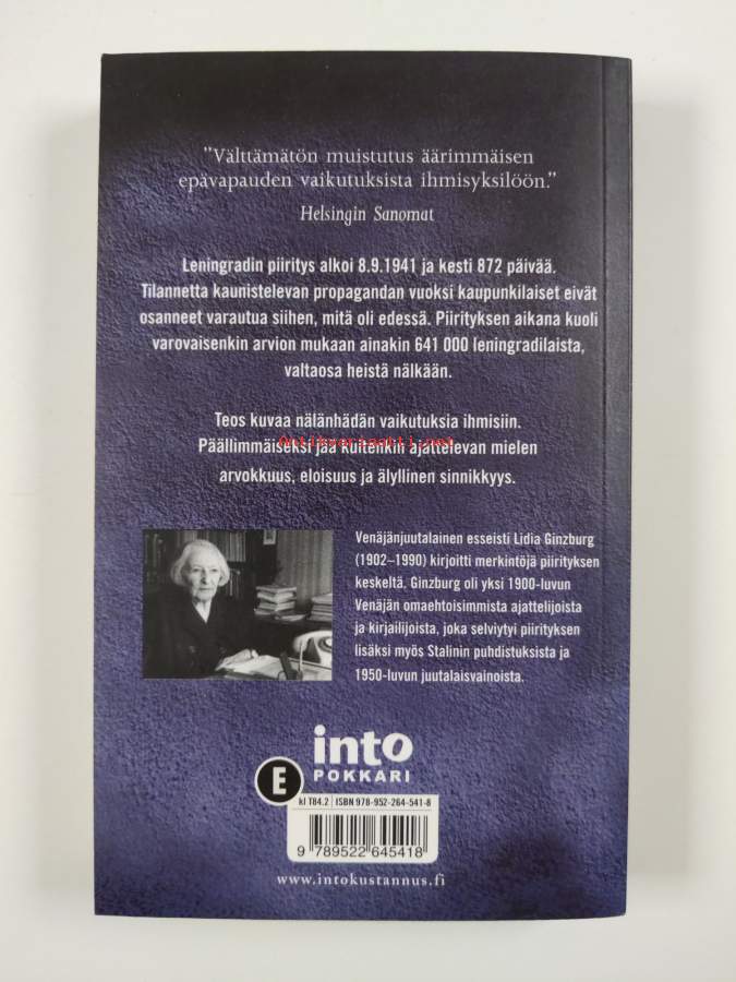 Muu(t) tekijä(t): Kirsti EraSarja: Into-pokkariAlkuteos: Zapiski blokadnogo čelovekaAsiasanat: sota-aika, toinen maailmansota, kokemukset, saarto, piiritys, siviiliväestö