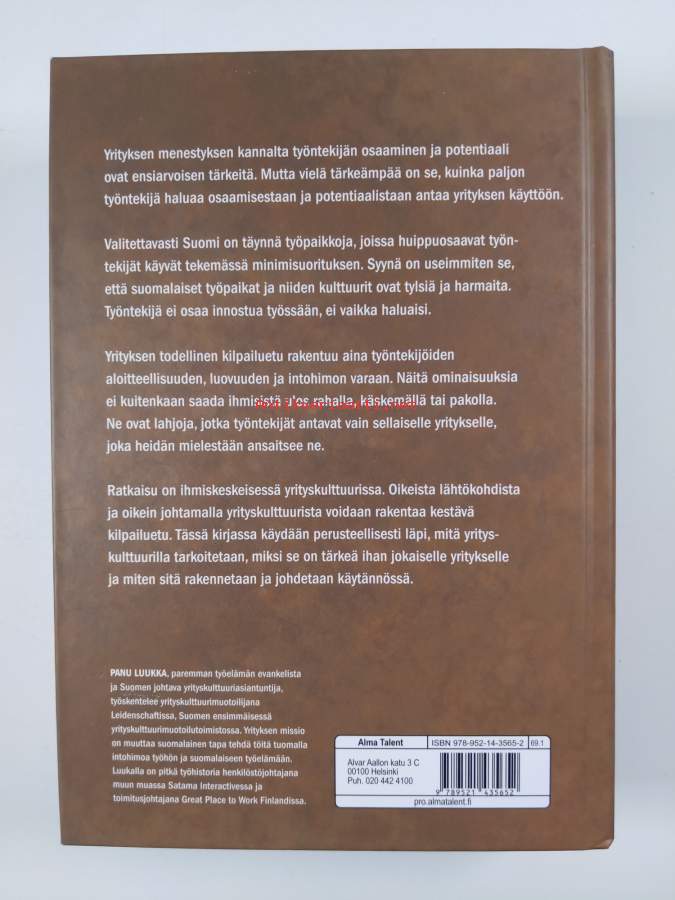 Asiasanat: yritykset, johtaminen, yrityskulttuuri, työyhteisöt, luovuus, ammattitaito, työntekijät, innovatiivisuus, organisaatiokulttuuri, yrityskuva, rekrytointi