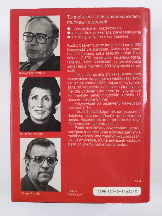 Merkinnät: omistajamerkintä leikattu pois etulehden ylälaidastaSarja: WSOY-pikkujättiläinenAsiasanat: tietokilpailut, visailukysymykset