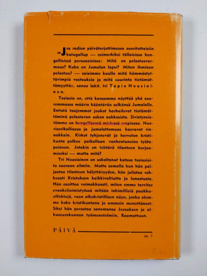 Hyvä. Tarkempi kuntoluokka: K3+ ; Selkämyksessä hieman vinoutta. Kansipaperin kunto: joitain repeämiä/kulumaa