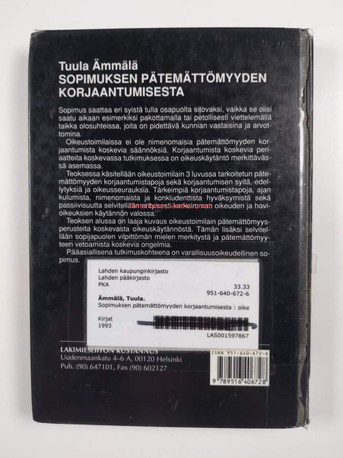 Merkinnät: omistajamerkintä (leima)Asiasanat: sopimusoikeus, oikeustoimi, velvoiteoikeus, pätemättömyys, kohtuullistaminen, vanhentuminen, vilpitön mieli, tahdonilmaisu, moitekanne