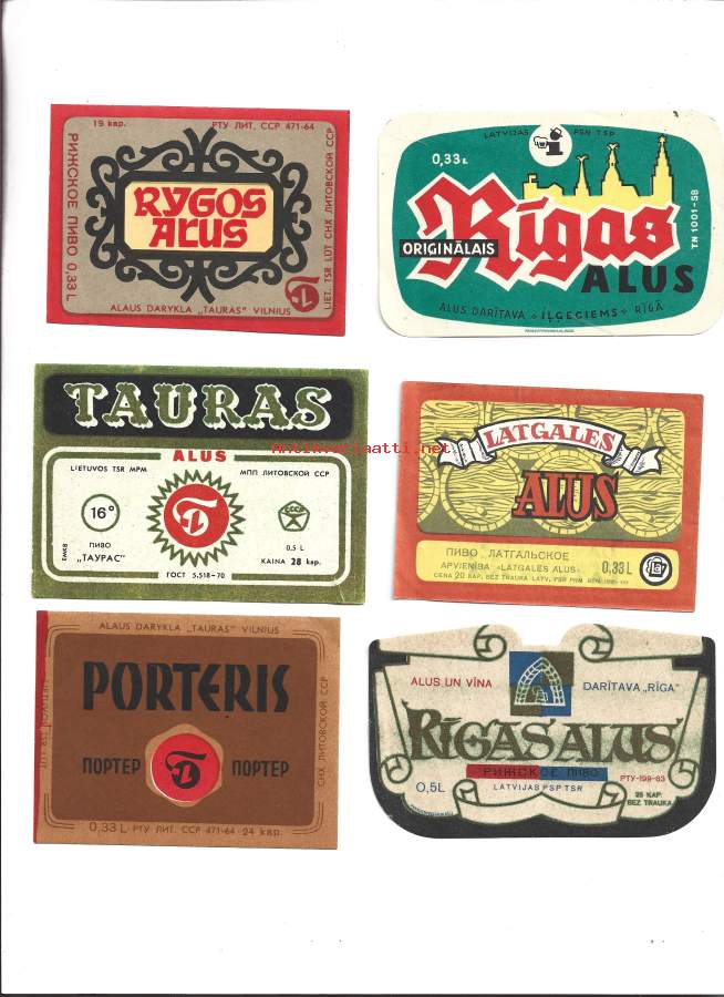 Neuvostoaikaisia Liettua Latvia - olutetiketti 6 eril