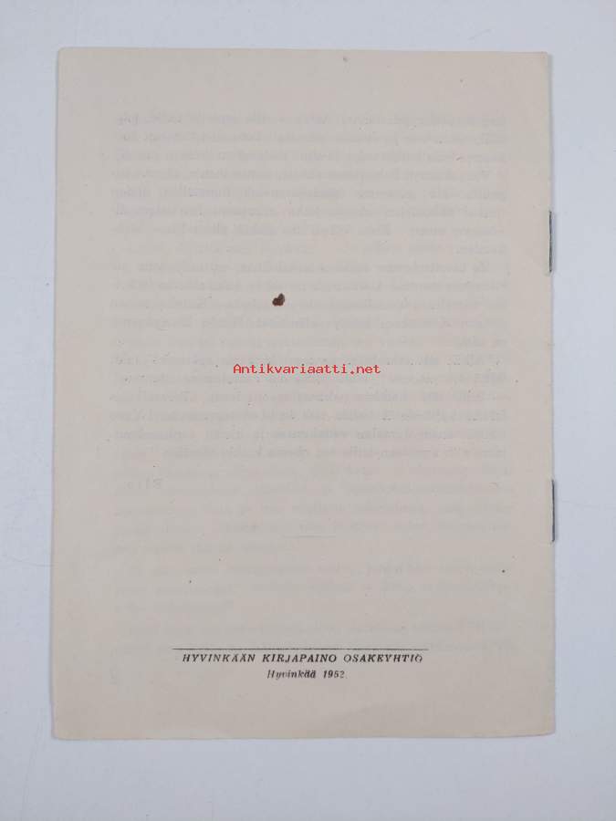 Tyydyttävä. Tarkempi kuntoluokka: K2- ; Hieman kulumaa kansissa, selkämyksessä aavistus vinoutta. aivan pienoinen tahra takakannessa