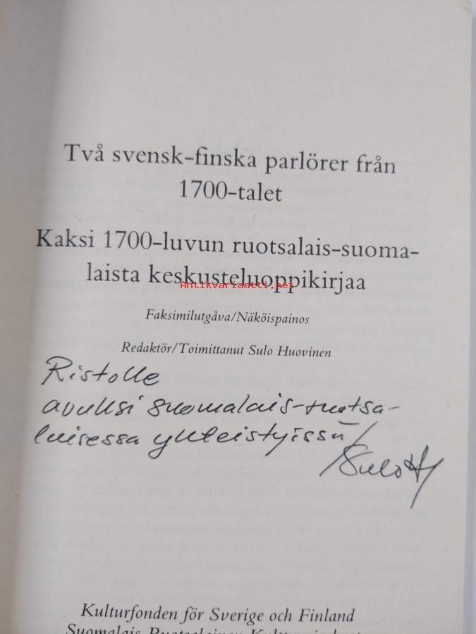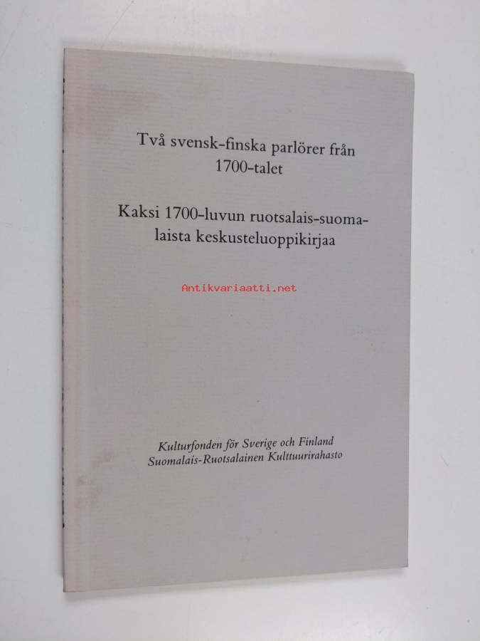 Två svensk-finska parlörer från 1700-talet = Kaksi 1700-luvun ruotsalais-suomalaista keskusteluoppikirjaa (faksimilutgåva/näköispainos) (signeerattu, tekijän omiste)