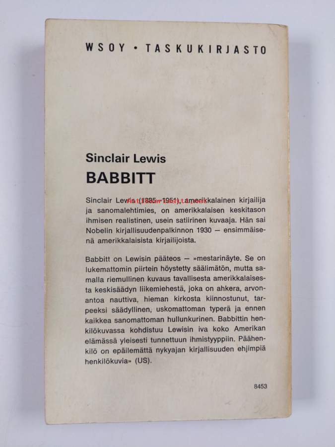 Muu(t) tekijä(t): Eino VoionmaaMerkinnät: omistajamerkintäSarja: Taskukirjasto 73Alkuteos: BabbittAsiasanat: arkielämä, perheet, porvarillisuus