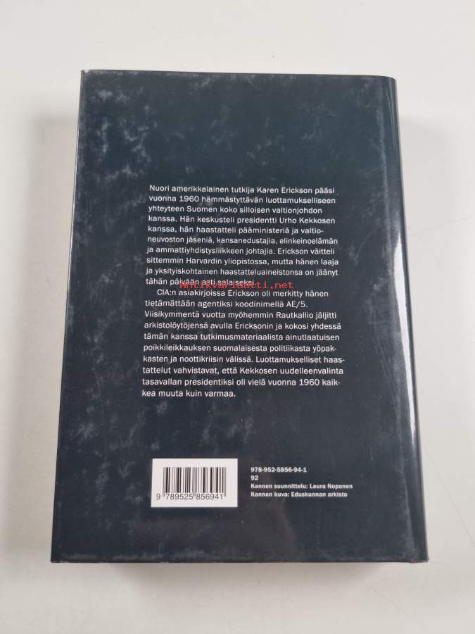 Erinomainen. Tarkempi kuntoluokka: K4- ; Selkämyksessä aavistus vinoutta. Kansipaperin kunto: pientä kulumaa