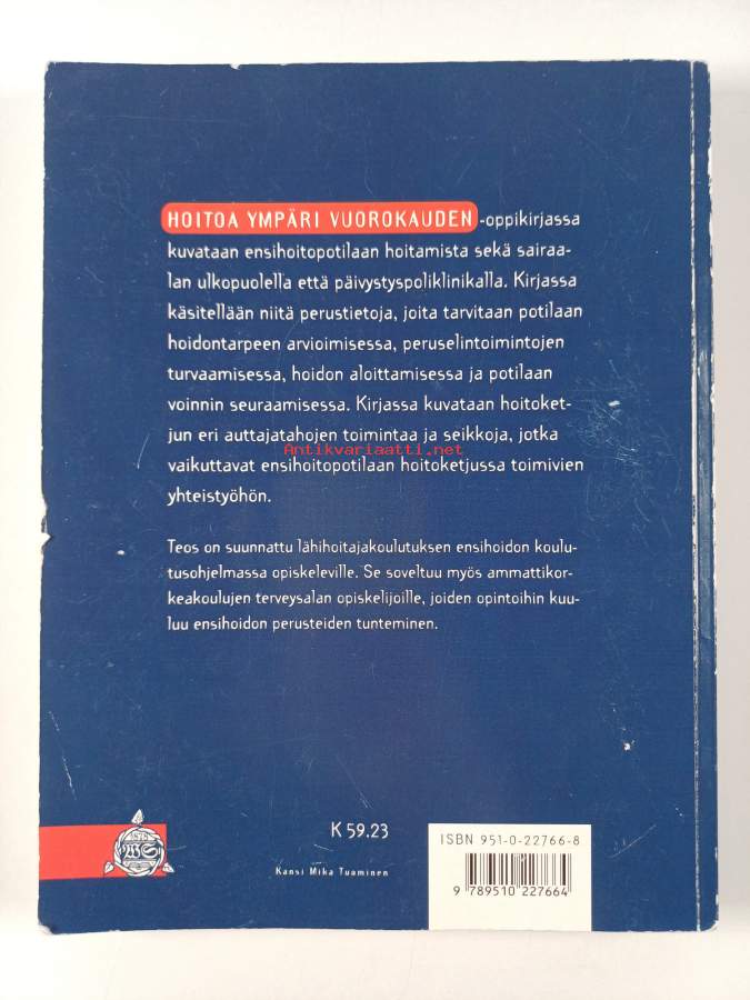Muu(t) tekijä(t): Tiina Toivola, Pertti SopanenMerkinnät: omistajamerkintä leikattu pois etulehden ylälaidastaAsiasanat: ensiapu, tapaturmat, ennaltaehkäisy, arviointi, verkostot, hoitotyö, kipu, turvallisuus, jaksaminen, väkivalta, yhteistyö, pelastuspalvelu, lähihoitajat, sairaanhoito, ensihoito, työturvallisuus, laitteet, sairaalahygienia, sairaalainfektiot, sairaankuljetus, Emergency nursing, hoitotarve, poliklinikat, päivystys