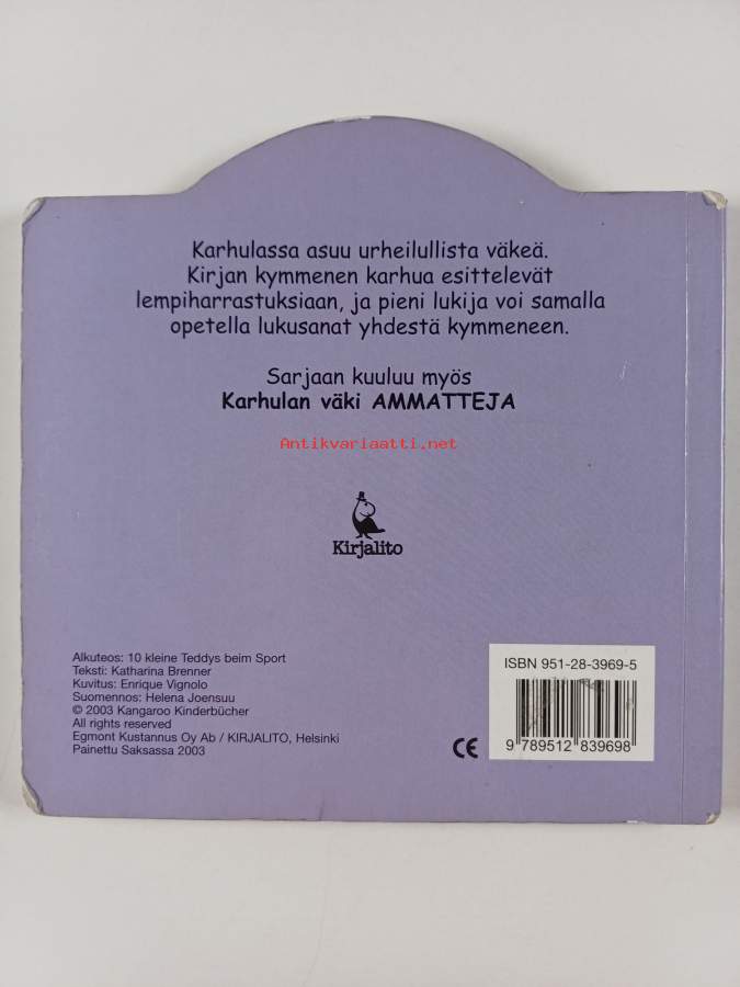 Muu(t) tekijä(t): Helena Joensuu, Enrique VignoloSarja: Karhulan väkiAlkuteos: 10 kleine Teddys beim SportAsiasanat: paksulehtiset kirjat