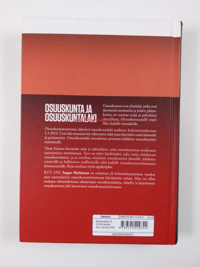 Muu(t) tekijä(t): Seppo PöyhönenAsiasanat: lainsäädäntö, tilinpäätös, osuustoiminta, osuuskunnat, osuuspankit, perustaminen, hallinto, osuusliikkeet, taloushallinto, jäsenistö, hallintoelimet, hallinnointi, voitonjako, osuuskuntalaki