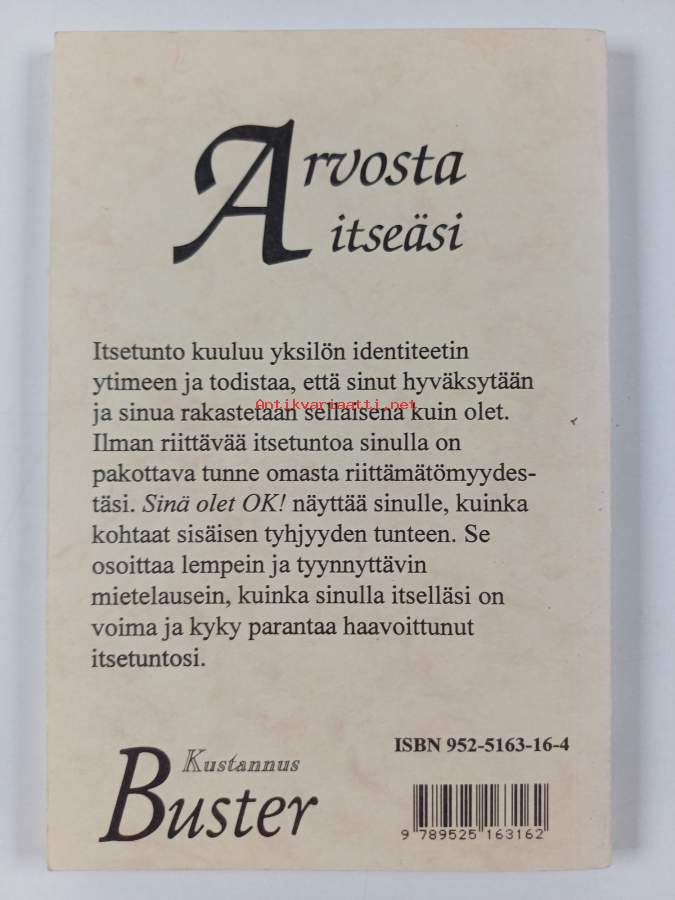 Muu(t) tekijä(t): Kirsi-Mari Lehtonen, R. W. AlleySarja: Arvosta itseäsiAlkuteos: Self-esteem therapyAsiasanat: elämäntaito, itsetunto