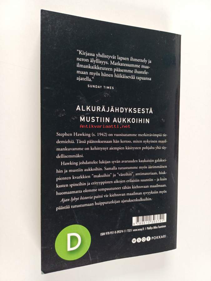 Merkinnät: omistajamerkintäSarja: WSOY pokkariAlkuteos: A brief history of timeAsiasanat: maailmankaikkeuden synty, mustat aukot, suhteellisuusteoria