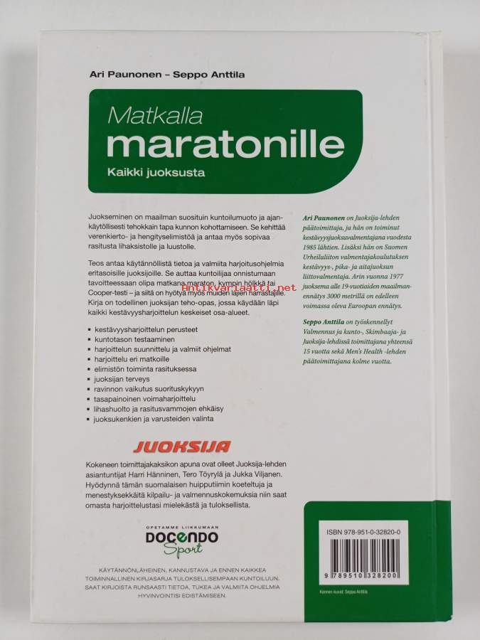 Muu(t) tekijä(t): Seppo AnttilaSarja: Docendo sport 15Asiasanat: juoksu, harjoittelu, kestävyysjuoksu, maratonjuoksu