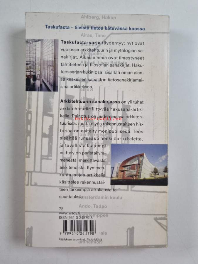 Muu(t) tekijä(t): Liisa Honkala, Teppo JokinenSarja: TaskufactaAsiasanat: sanakirjat, arkkitehtuuri, hakuteokset, terminologia