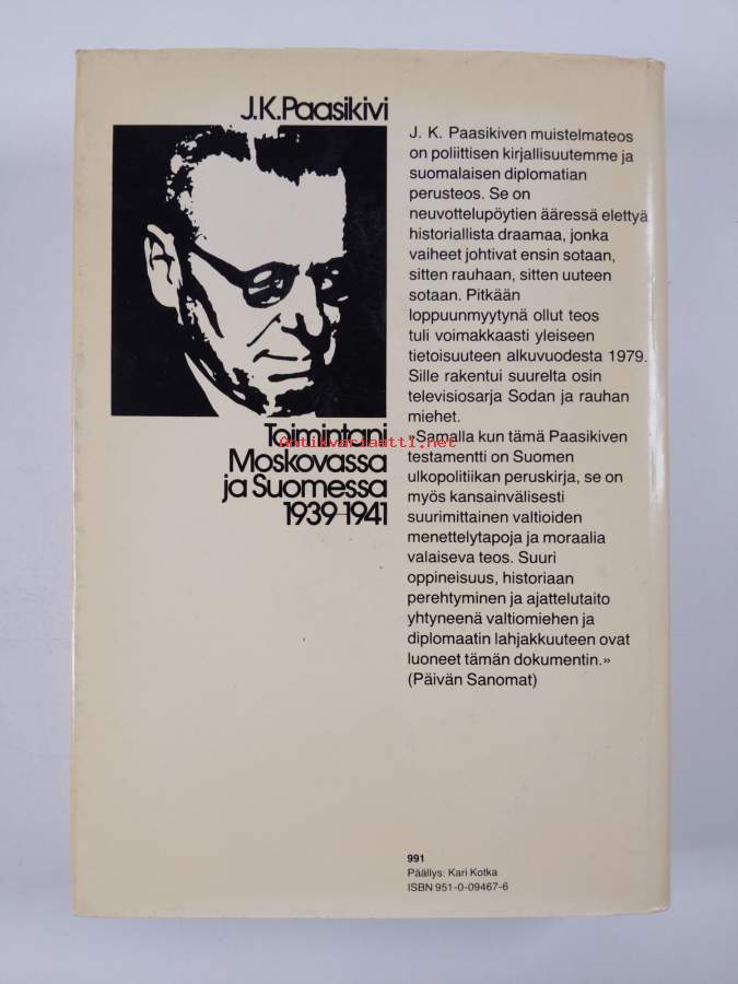 Kirjamainos - Paasikiven muistelmia- Muistelmia sortovuosilta/Toimintani Moskovassa ja Suomessa 1939 - 41