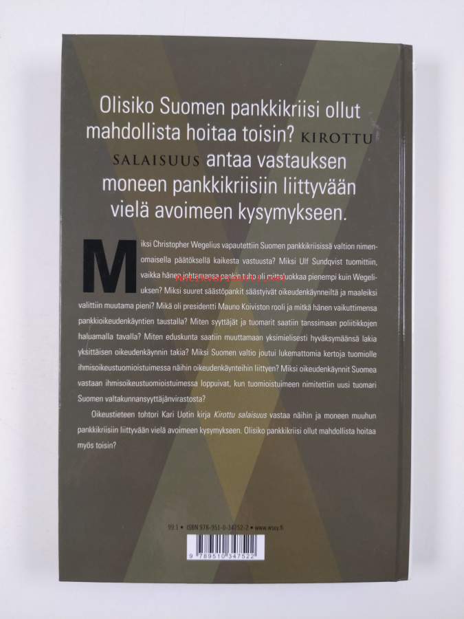 Hyvä. Tarkempi kuntoluokka: K3+ ; Pienoista kulumaa kansissa, takana vanha hintalappu, selkämyksessä aavistus vinoutta