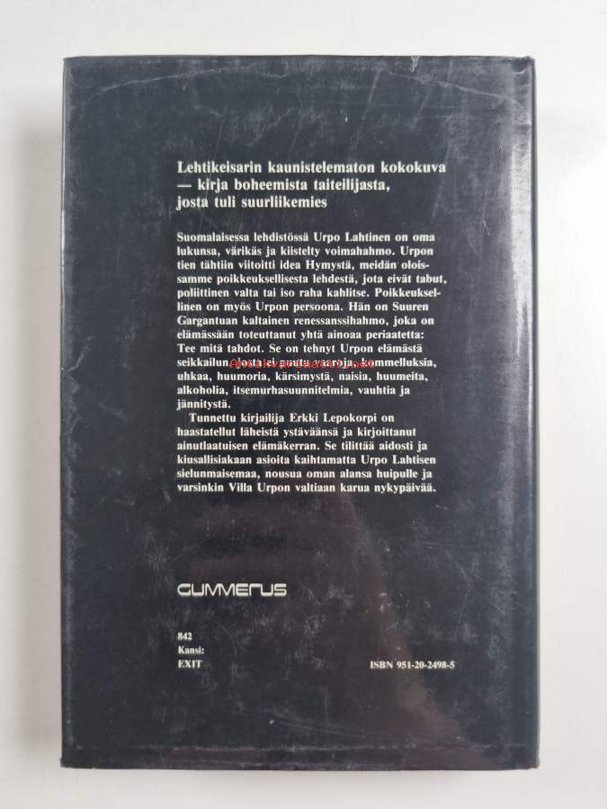 Hyvä. Pienoista tahraisuutta kansissa, aivan pienoista kolhua kulmissa, selkämyksessä hieman vinoutta. Kansipaperin kunto: jonkin verran kulumaa/pienoisia repeämiä