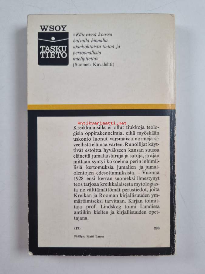 Muu(t) tekijä(t): I. K. Inha, Claes Lindskog ym.Sarja: Taskutieto 27Asiasanat: kirjallisuudenhistoria, sadut, antiikki, myytit, mytologia, yliluonnolliset olennot, jumalat, kreikankielinen kirjallisuus, jumalattaret, antiikin mytologia