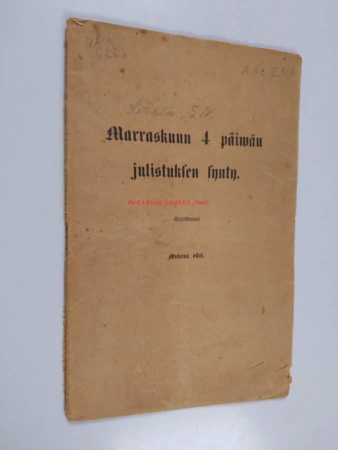 Tyydyttävä. Hieman nuhruisuutta kansissa, jonkin verran repeämää kansissa, selkämyksessä aavistus vinoutta. teksti fraktuuraa