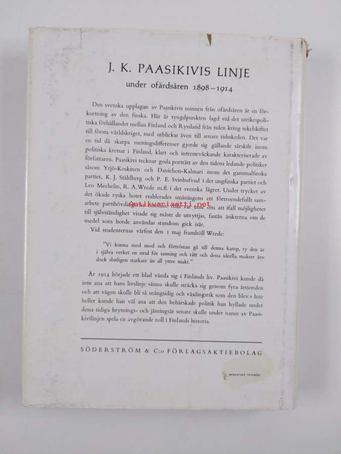Muu(t) tekijä(t): Ragnar NumelinMerkinnät: omistajamerkintäAlkuteos: Paasikiven muistelmia sortovuosiltaAsiasanat: kansanedustajat, presidentit