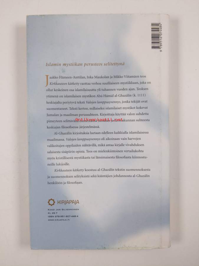 Muu(t) tekijä(t): Jaakko Hämeen-Anttila, Mikko Viitamäki ym.Alkuteos: Mishkát al-anwárAsiasanat: islam, mystiikka, sufilaisuus, sufism, God (Islam), Light
