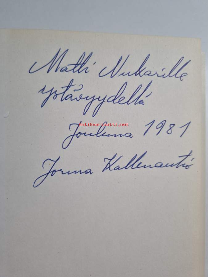 Hyvä. Tarkempi kuntoluokka: K3+ ; Hieman käytön jälkeä kansissa, selkämyksessä hieman vinoutta. Kansipaperin kunto: jonkin verran kulumaa/pienoisia repeämiä