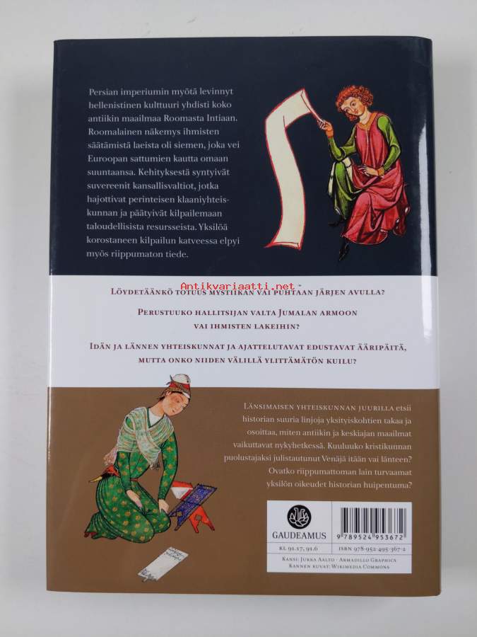 Asiasanat: historia, antiikki, maailmanhistoria, uskonnot, valta, valtarakenteet, oikeusjärjestelmät, yhteiskunnallinen muutos, arvot, keskiaika, islamilainen kulttuuri, kulttuuriperintö, länsimainen kulttuuri, länsimaat, oikeusvaltio, yksilönvapaus, yhteiskuntajärjestelmät, kansallisvaltio, instituutiot, maallistuminen, kulttuurivaikutukset, hellenismi, yksilö, oppineisuus