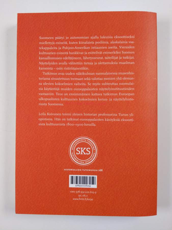 Koko nimi: Eksotisoidut esineet ja avartuva maailma : Euroopan ulkopuoliset kulttuurit näytteillä Suomessa 1870-1910-luvuilla - Euroopan ulkopuoliset kulttuurit näytteillä Suomessa 1870-1910-luvuillaSarja: Historiallisia tutkimuksia 268Asiasanat: orientalismi, kulttuurihistoria, näyttelyt, museot, kulttuurihistorialliset museot, museoesineet, kansatiede, museotoimi, kansallinen kulttuuri, kulttuurierot, kulttuurikosketukset, ulkomaat, aineellinen kulttuuri, kansallismuseot, eksotiikka, kotimaa