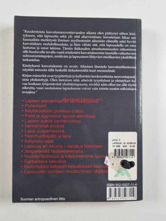 Muu(t) tekijä(t): Annikki Kiefer, Anja Eklund-SchöpperAlkuteos: Kindheit und Jugend heute : Sinn und Unsinn der ErziehungAsiasanat: persoonallisuuden kehitys, psyykkinen kehitys, nuoret, lapsuus, avioero, perheet, kasvatus, kasvatusoppaat, nuoruus, murrosikä, kehitys, antroposofia, kehityspsykologia, nuorisorikollisuus, lapsen kehitys