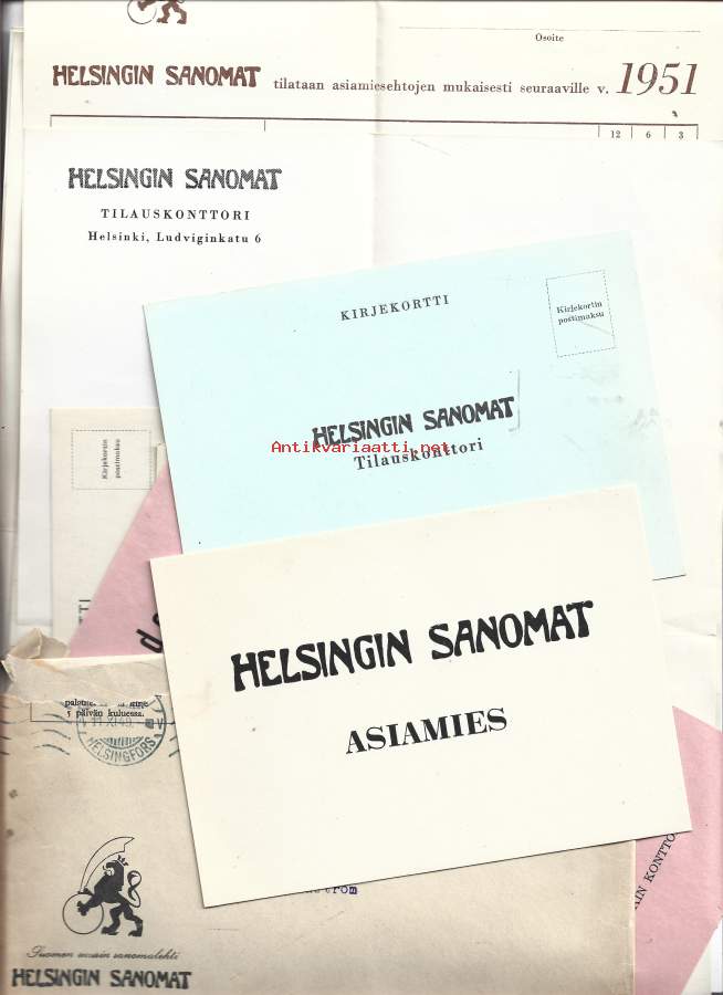 Helsingin Sanomat asiamies materiaalia 1950-51 n 12 kpl erä