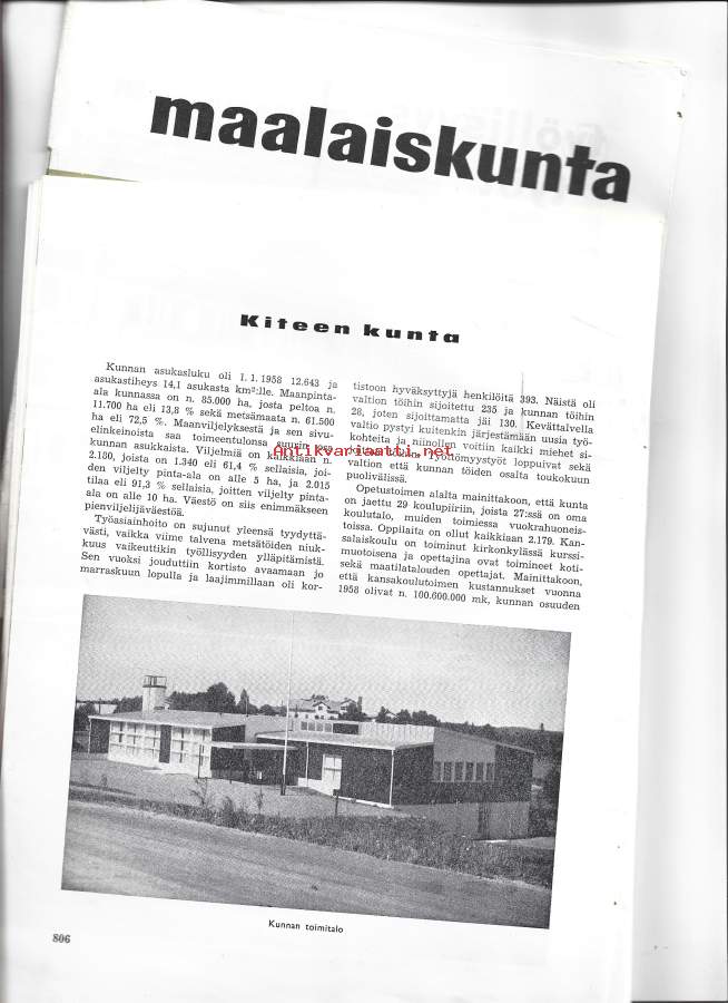 Maalaiskunta 1959 nr 17 / Esittelyssä Kiteen kunta