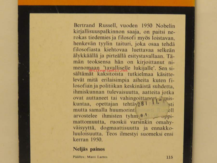 Filosofiaa jokamiehelle / Bertrand Russell ; suom. Kyllikki Sutinen.