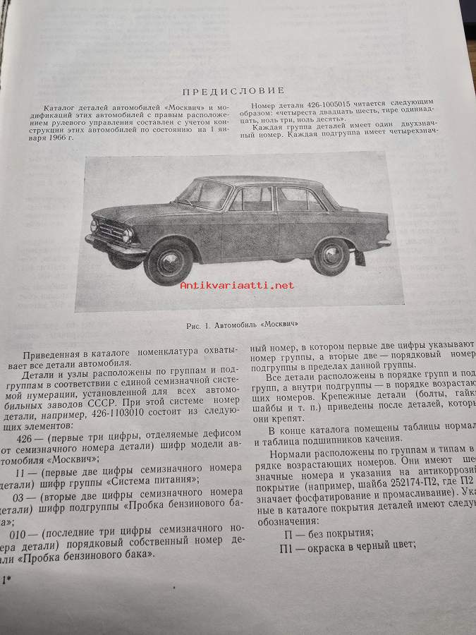 MOSKVICH 407 ja 423H varaosa luettelo.