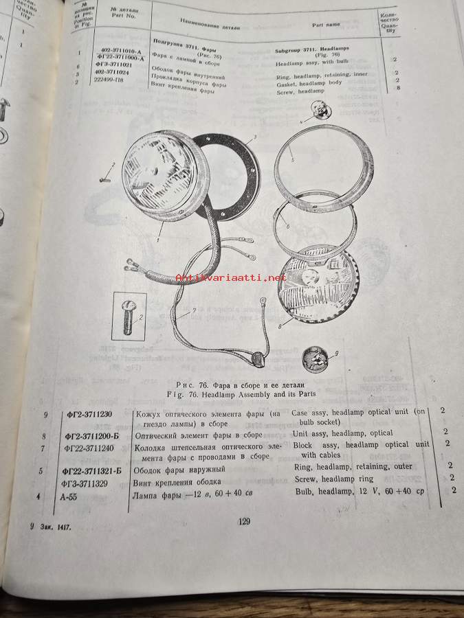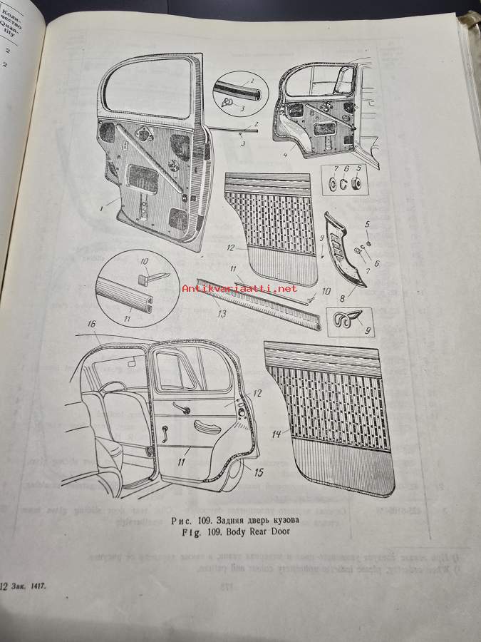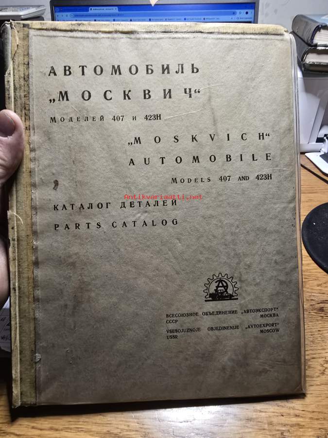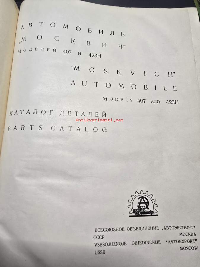 kovakantinen moskvich 407 ja 423H varaosa luettelo.. englannin ja venäjän kielinen. sivuja 304.