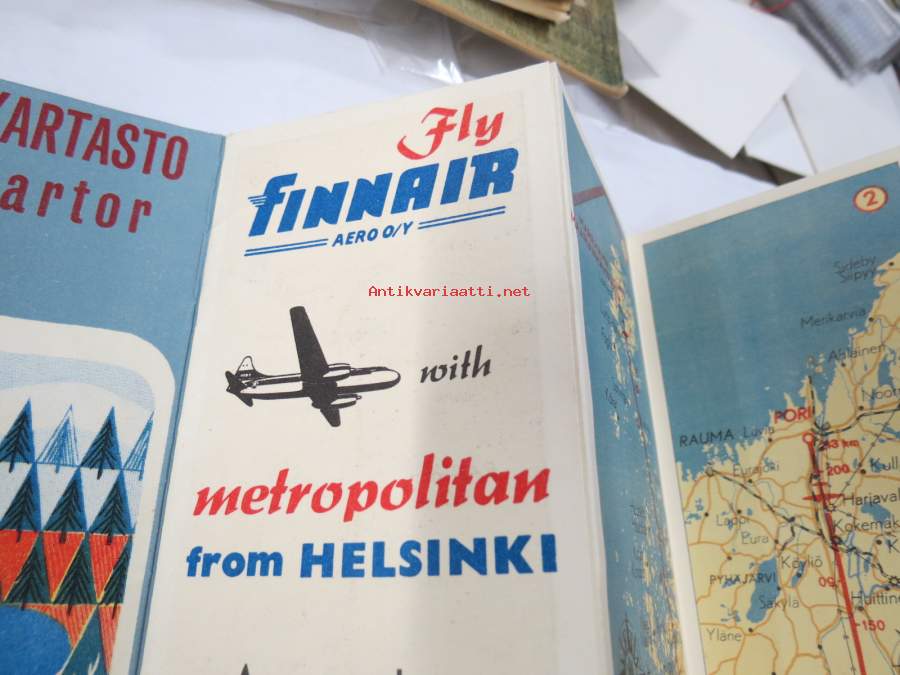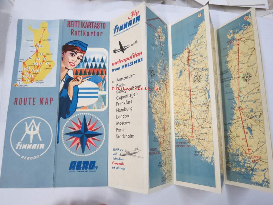 Aero Oy - Finnair Route Map / Reittikartasto / Ruttkartor - Fly Finnair with Metropolitan & Caravelle (introducing 1960) - Chymos / Shell