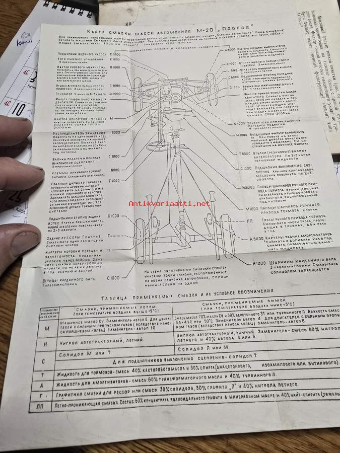 Popeda M-20 -varaosaluettelo, alkuperäinen venäjänkielinen