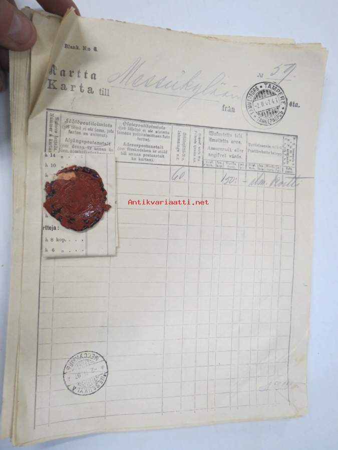 Kartta 2.2.-28.2.1907 Messukylään Tampereelta / Karta till... - Postilaitoksen kirjattujen lähetysten luettelo, sinettileima