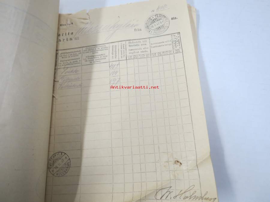 19 x 26 cm postihistoriallinen kohde, 21 erillistä lomaketta niputettu yhteen.