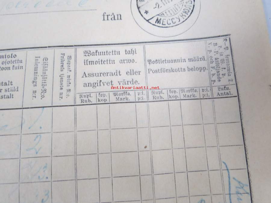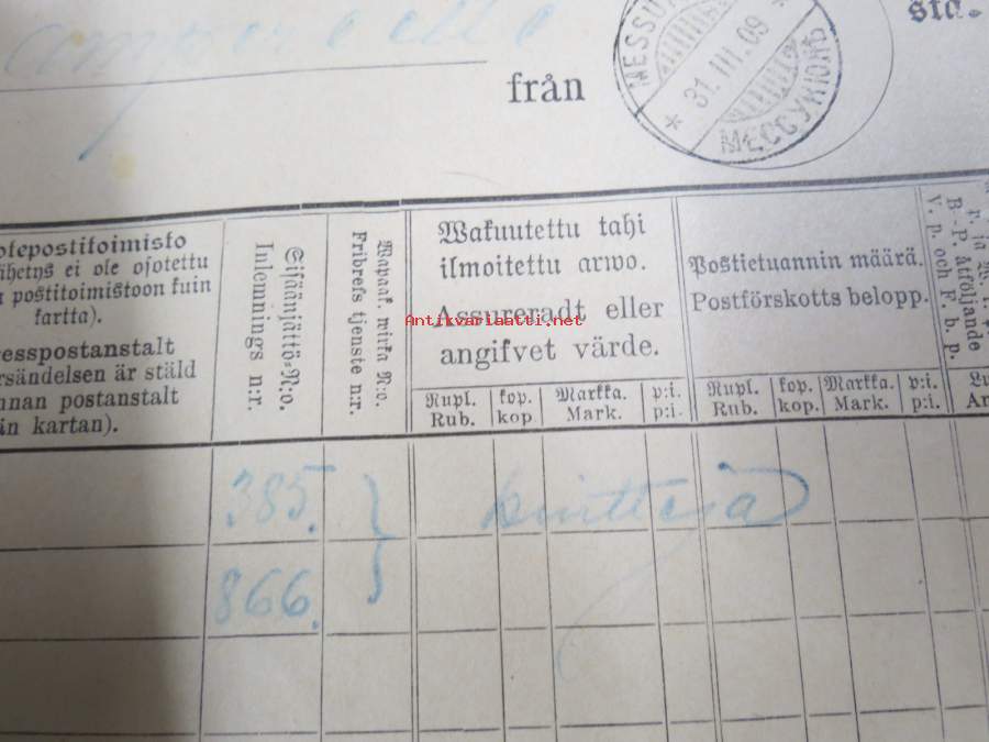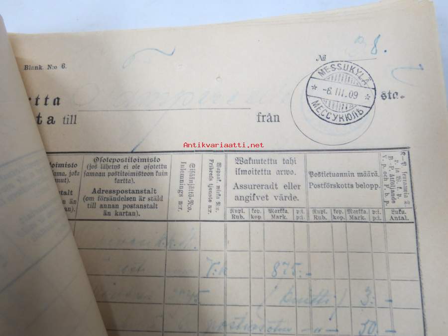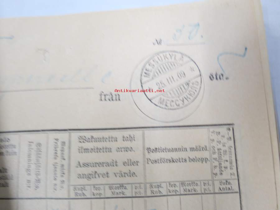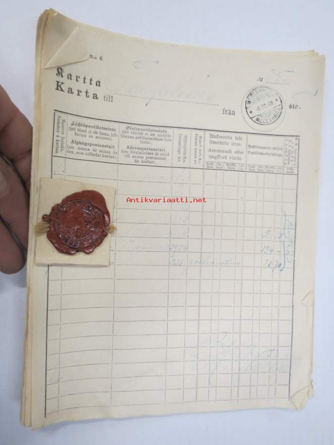 Kartta 2.3.-31.3.1909 Messukylään Tampereelta / Karta till... - Postilaitoksen kirjattujen lähetysten luettelo, sinettileima