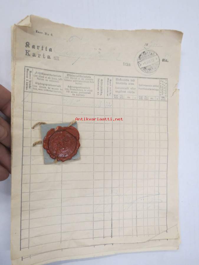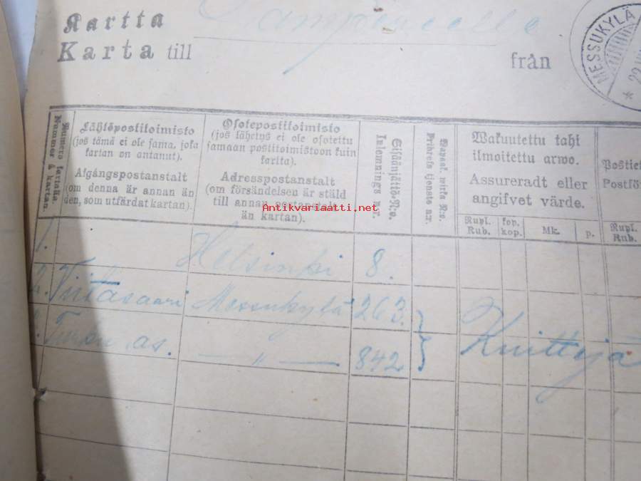 19 x 26 cm postihistoriallinen kohde, 12 erillistä lomaketta niputettu yhteen.