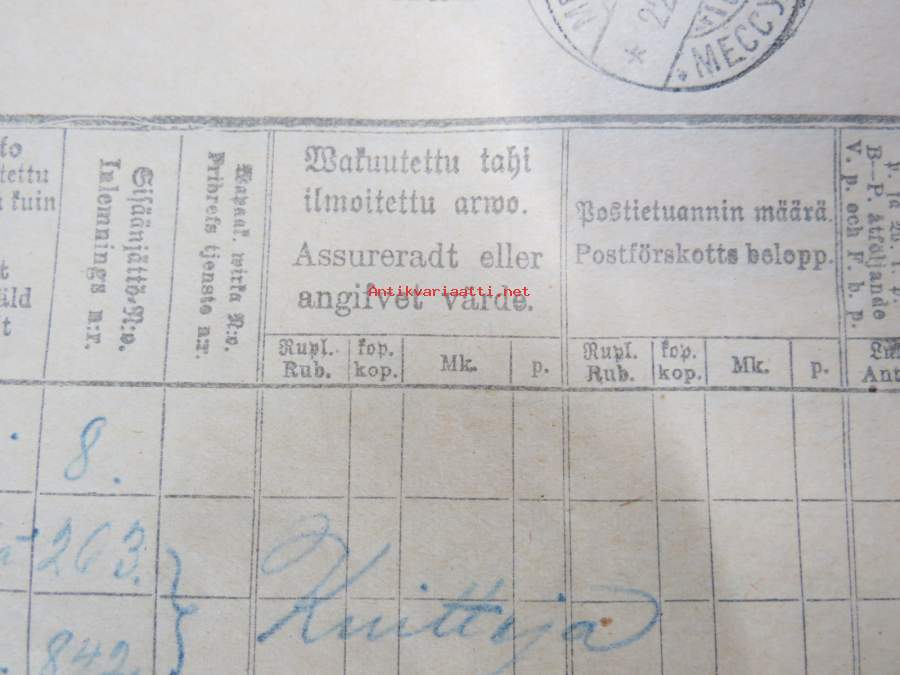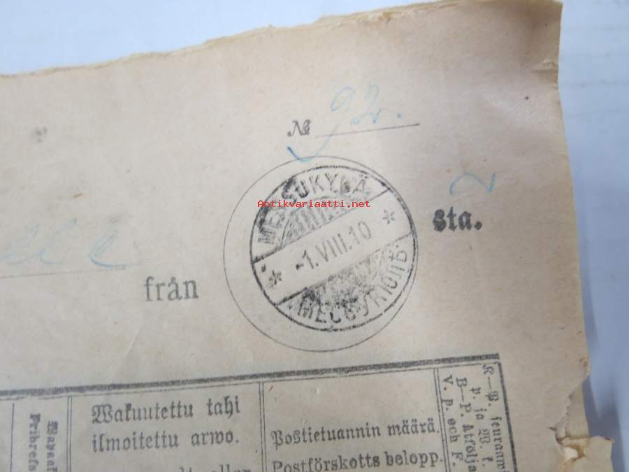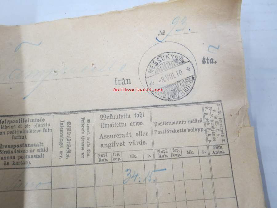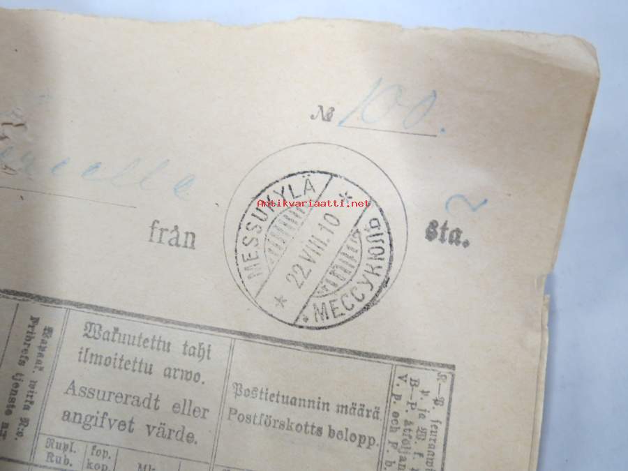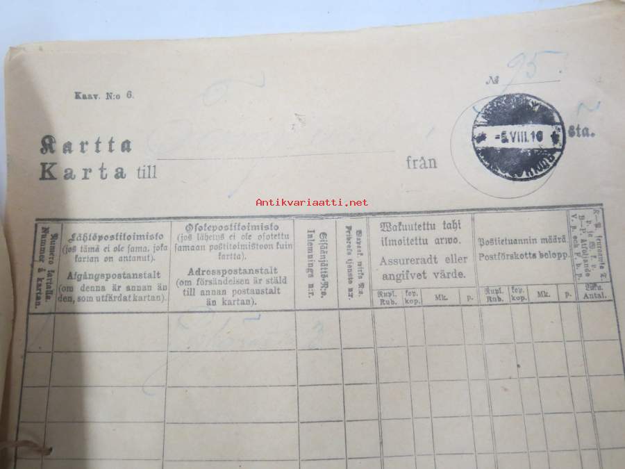 Kartta 1.8.-31.8.1910 Messukylään Tampereelta / Karta till... - Postilaitoksen kirjattujen lähetysten luettelo, sinettileima