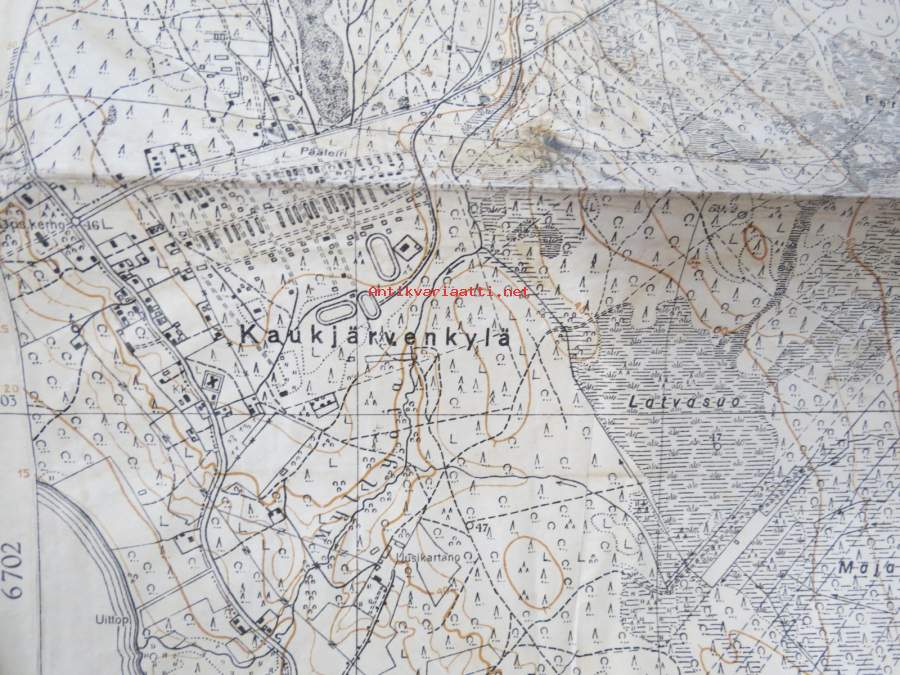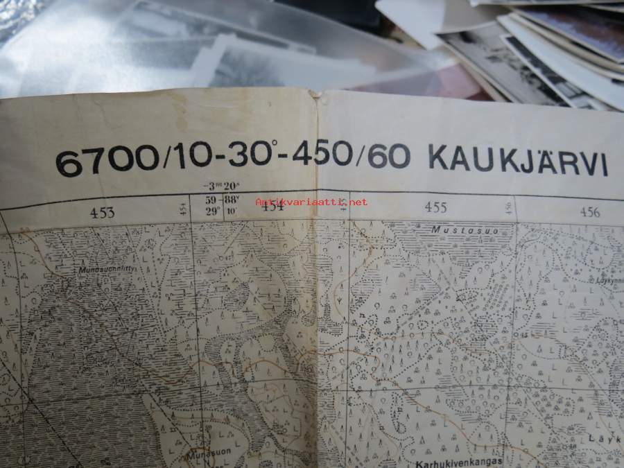 Kaukjärvi 6700/10-30-460/60 - Perkjärvi - Vierusta, tunnetun luovutetussa Karjalassa olleen Perkjärven tykistöharjoitusalueen kartta v. 1938