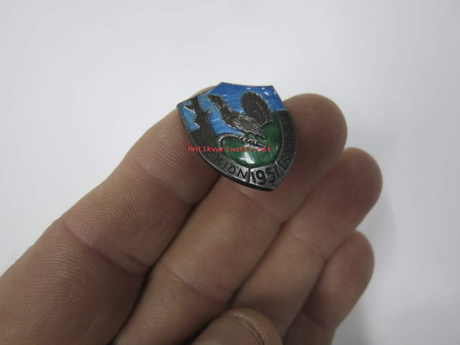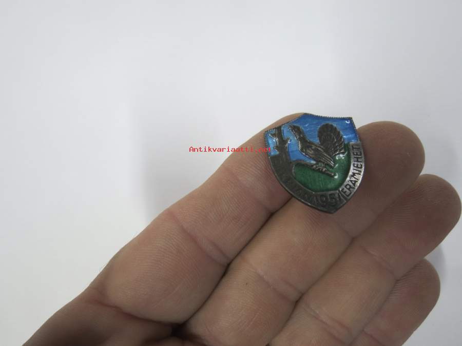 Piikkiön erämiehet 1951 -emalimerkki, mutterikiinnitteinen 813 hopeaa