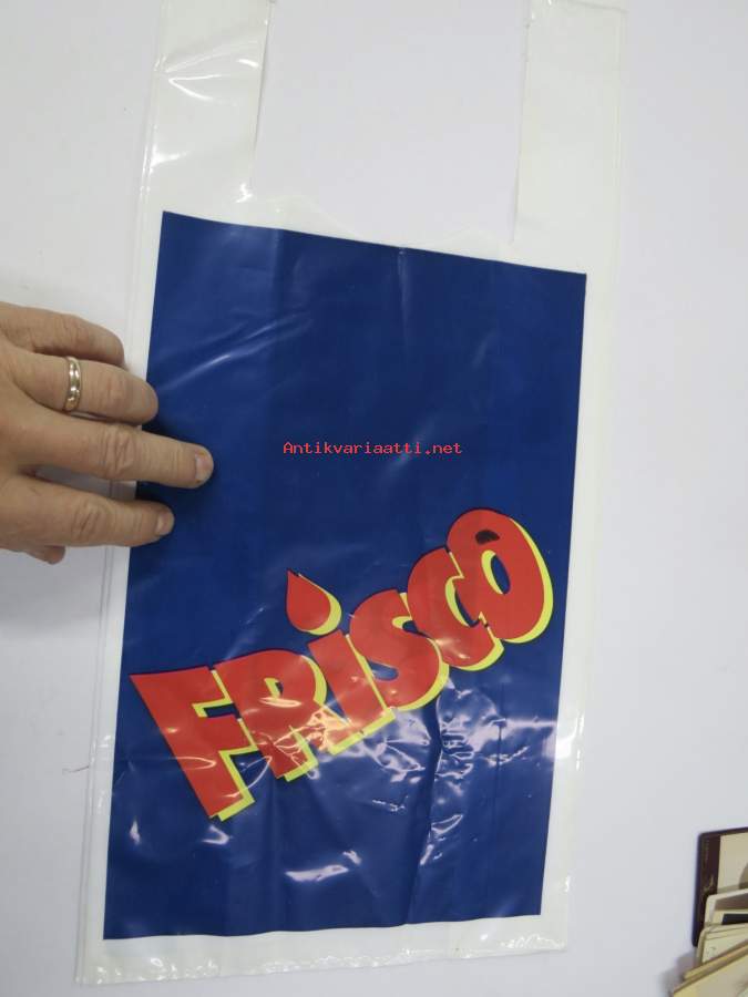 Frisco -muovikassi 1980-luvulta, mainoskassi / promootiokassi
