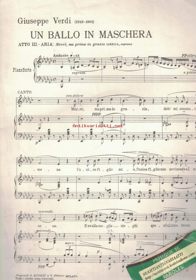 Oopperasävelmiä: Verdi, Puccini: sopraanolle