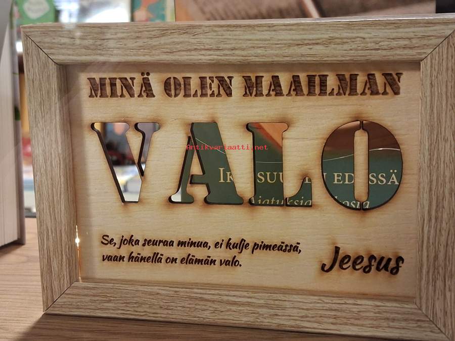 Taulussa AA- paristoilla toimiva valo, josta tulee kaunis heijastus seinää vasten. Korkeus 12,2 cm. Leveys 17,2 cm