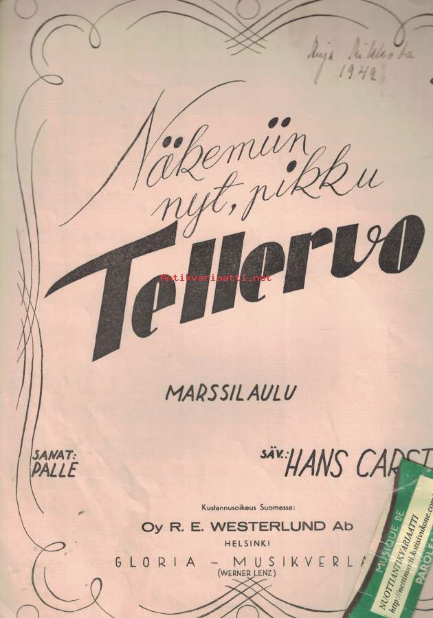 Näkemiin nyt, pikku Tellervo (marssilaulu) -nuotit